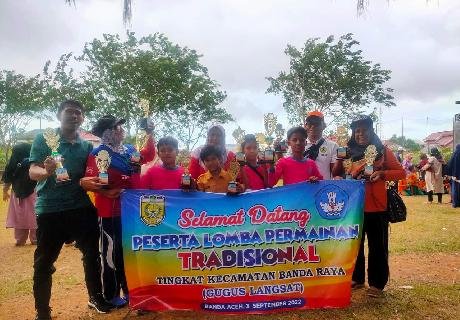 Banda Aceh - Siswa Sekolah Dasar Negeri 50 Banda Aceh meraih prestasi terbaik pada Lomba Permainan Tradisional Anak tingkat Kecamatan Banda Raya yang gelar di lapangan Bola Sekolah Fatih Bilingual School, Gampong Lamlagang, Jumat (3/9/2022). Pada lomba tradisional tersebut SDN 50 dibawah binaan Nasri Kurniawan, Cut Devi, Rabiul, Iskandar serta Muhammad Taufik mengikuti seluruh caban...